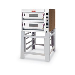 • Finition extérieure inox • Sole en pierre réfractaire épaisseur 14 mm • Porte à ouverture contrebalancée • Résistances blindées en acier inox à la voûte (visible) et à la sole (sous la pierre réfractaire) • Éclairage interne protégé • Régulation indépendante de la voûte et de la sole pour chaque chambre • Commandes mécaniques ou digitales • Température de fonctionnement maxi. : 450°C • Alimentation :400/3/N/T (existent aussi en 230/1/N/T et 230/3/N/T, nous consulter) • 2 résistances en haut et 2 en bas